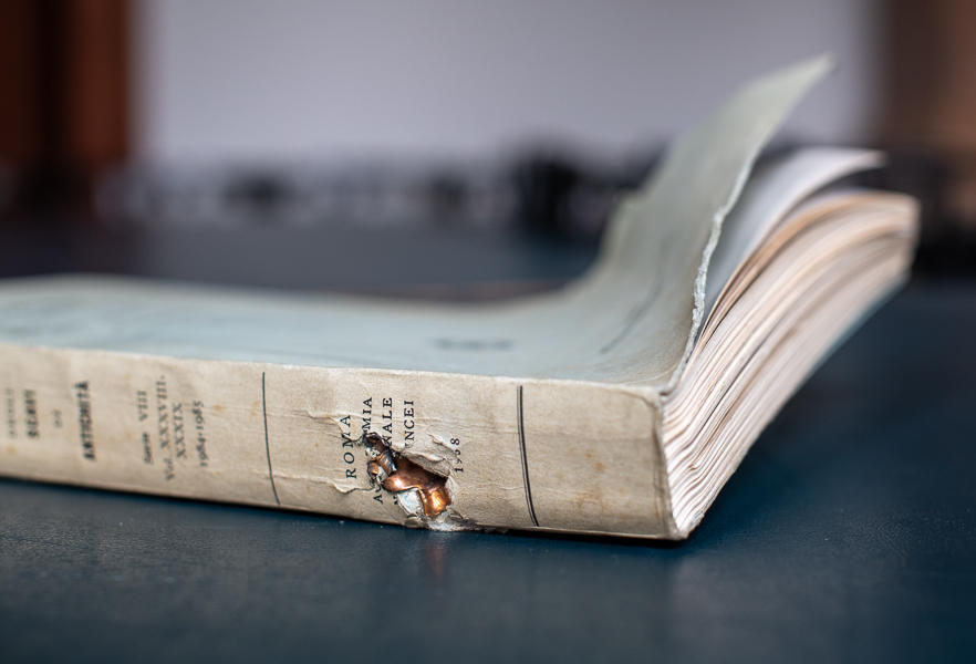 Book with bullet still lodged in it, Library of the National Museum of Bosnia and Herzegovina, Sarajevo, Bosnia and Herzegovina, 2025