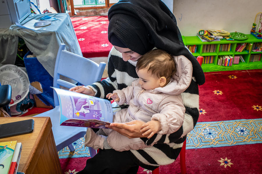 Reading to child, Al-Aqsa Mosque Library, Old City, Jerusalem, 2019