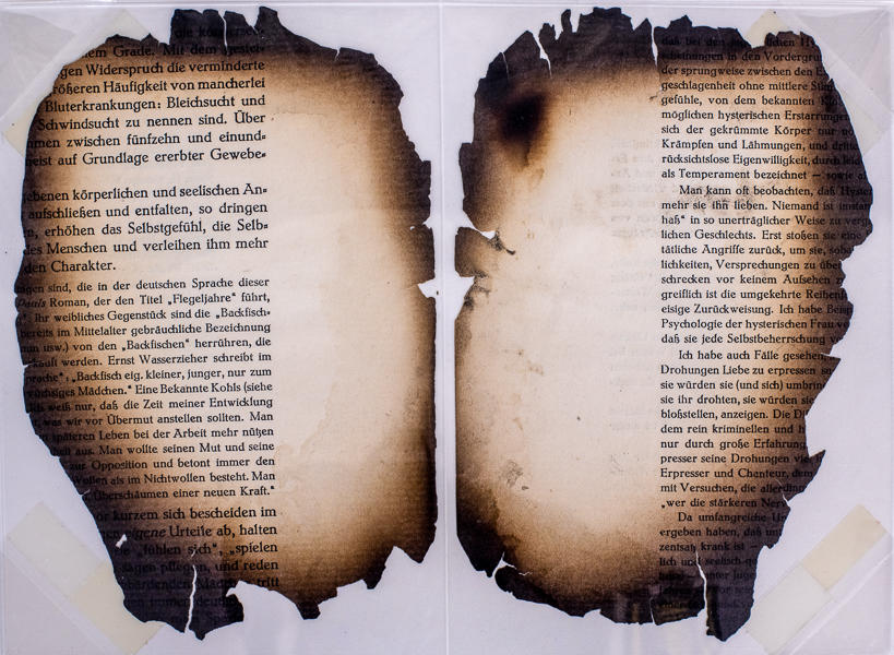Pages rescued from Nazi book burning, National Library of Israel, Jerusalem, Israel, 2019