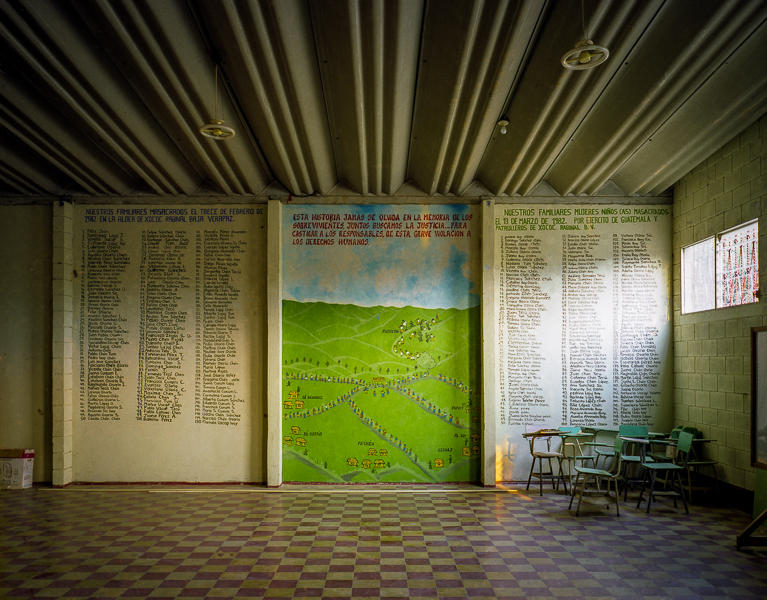 Memories of a massacre - mural and names of victims, Mayan Community Center/Library, Colonia Pacux, Guatemala, 2007