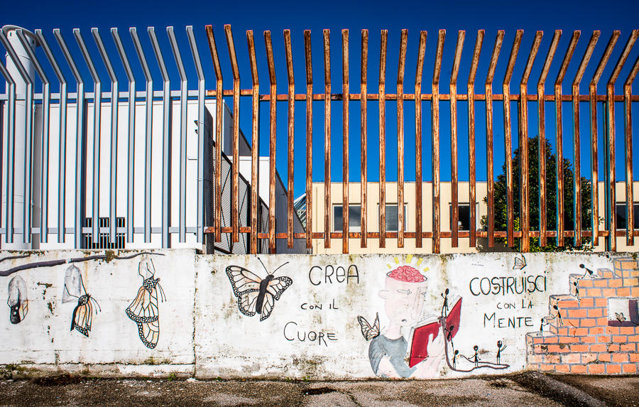 Named after another 14-year-old girl killed in Marfia violence. The library is located in a former Mafia drug house/torture chamber, Biblioteca di Scampia Gelsomina Verde, Naples, Italy, 2018